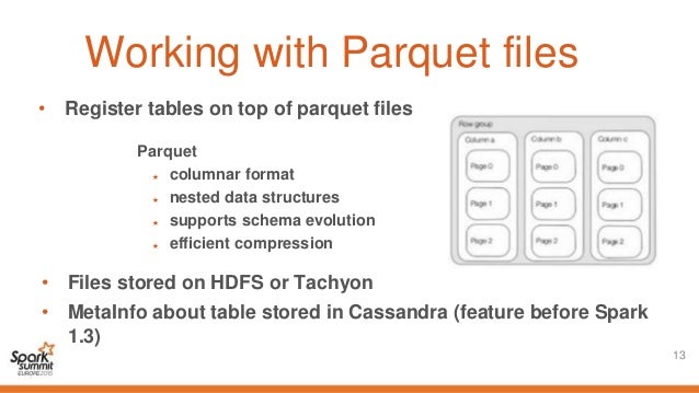 Parquet - Data I/O - Philadelphia 2013 from cdn.slidesharecdn.com Parquet is built from the ground up with complex nested data structures in mind, and uses the record shredding and assembly algorithm described in the dremel paper. Parquet format stores data grouped by columns not records. Parquet files are compressed columnar files that are efficient to load and process. Data in apache parquet files is written against specific schema. Apache parquet data types map to transformation data types that the data integration service uses to move data across the following table compares parquet data types and transformation data types Parquet is intended for efficient storage and fast read there are many implementations of parquet in many languages. This allows splitting columns into. Use the parquet clause with the copy statement to load data in the parquet format.