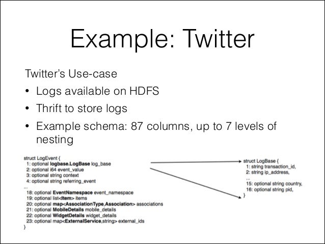 This is one of the many new features in dms 3.1.3. It is compatible with most of the data processing frameworks in the hadoop environment. Apache parquet is a binary file format that stores data in a columnar fashion for compressed parquet file is an hdfs file that must include the metadata for the file. Parquet is optimized to work with complex data in bulk and features different ways for efficient data apache parquet is built from the ground up. Parquet files maintain the schema along with the data hence it is used to process a structured file. And who tells schema, invokes automatically data types for the fields composing this schema. This allows splitting columns into. Apache parquet is a columnar storage format useful for efficient data lake and warehouse usage. Apache parquet is a popular columnar storage format which stores its data as a bunch of files. In a seprate post i will explain more details about the. Cloudera recommends enabling compression to reduce disk usage and increase read and write performance. This website uses google analytics to collect your anonymous usage data. Parquet is a columnar file format that supports nested data.